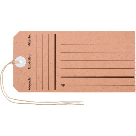 Etiquettes volantes avec champ d'adresse BIELLA avec préimpression du champ d'adresse, oeillet en carton et ficelle. Etui de 10 étiquettes.