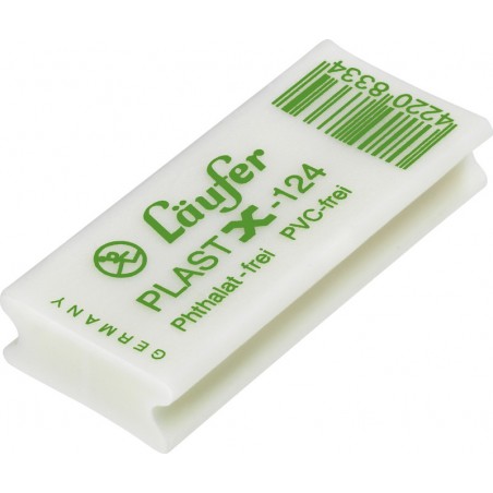 Gomme LÄUFER® Plast X pour crayons graphite et crayons de couleur, surface de gommage en forme de X pour un gommage précis de points, traits et surfaces, sans phtalates et PVC.