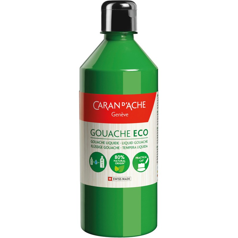 Gouache liquide CARAN D'ACHE Eco couleur résistante à la lumière, 80% à base de composants naturels (excepté les couleurs néon), soluble à l'eau, fort pouvoir couvrant même si diluée dans cinq parts d'eau, capuchon de dosage pour un dosage précis et économique, utilisable sur le papier, carton, bois, verre, métal, la pâte à sel, etc., s'enlève à l'eau savonneuse sur les mains, sols et tables, flacon en PET sans BPA ni phtalates. Flacon de 500 ml. Dimensions: H 205 mm, Ø 68 mm.