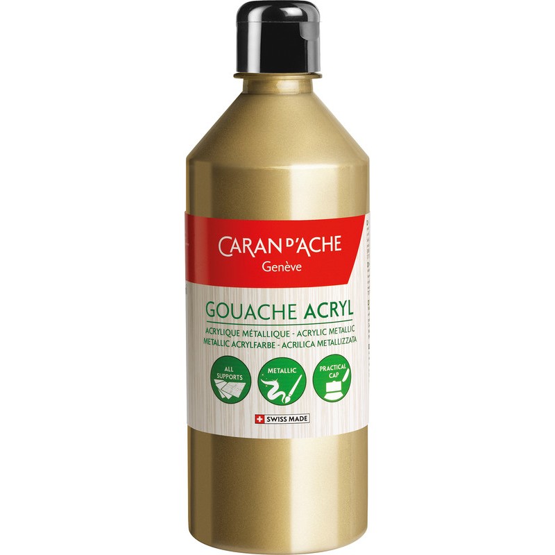 Gouache CARAN D'ACHE Acryl couleur résistante à la lumière, fort pouvoir couvrant, effet vernis satiné, capuchon de dosage pour un dosage précis et économique, utilisable sur le papier, le carton, le bois, les tissus, la pâte à sel, etc., bouteille en PET. Bouteille de 500 ml. Durabilité eco:plus: emballage respectueux de l'environnement.