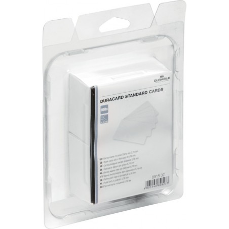 Cartes PVC DURABLE Duracard pour l'imprimante DURABLE Duracard ID 300, format 53,98 x 85,6 mm. Emballage de 100 cartes. Durabilité eco:plus: recyclable.