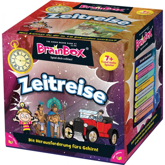 BRAINBOX® Gedächtnisspiel texte en allemand, jeu de mémorisation et rapidité qui ne nécessite ni crayon ni papier ni plateau de jeu, chaque tour ne dure que dix secondes, et c'est aussi le temps qu'il faut pour expliquer les règles du jeu et préparer la boîte pratique pour jouer. Dimensions: L 120 x H 120 x P 120 mm.