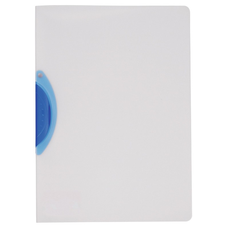 Dossier à pince KOLMA® easy Plus en matériau KolmaFlex semi-transparent incolore, le couvercle antérieur est entièrement rabattable, pince en matière plastique de couleur translucide, capacité env. 30 feuilles 80 g/m2, pour format A4. Durabilité eco:plus: construit pour être démontable, recyclable, teneur en déchets recyclés après utilisation max. 100%.