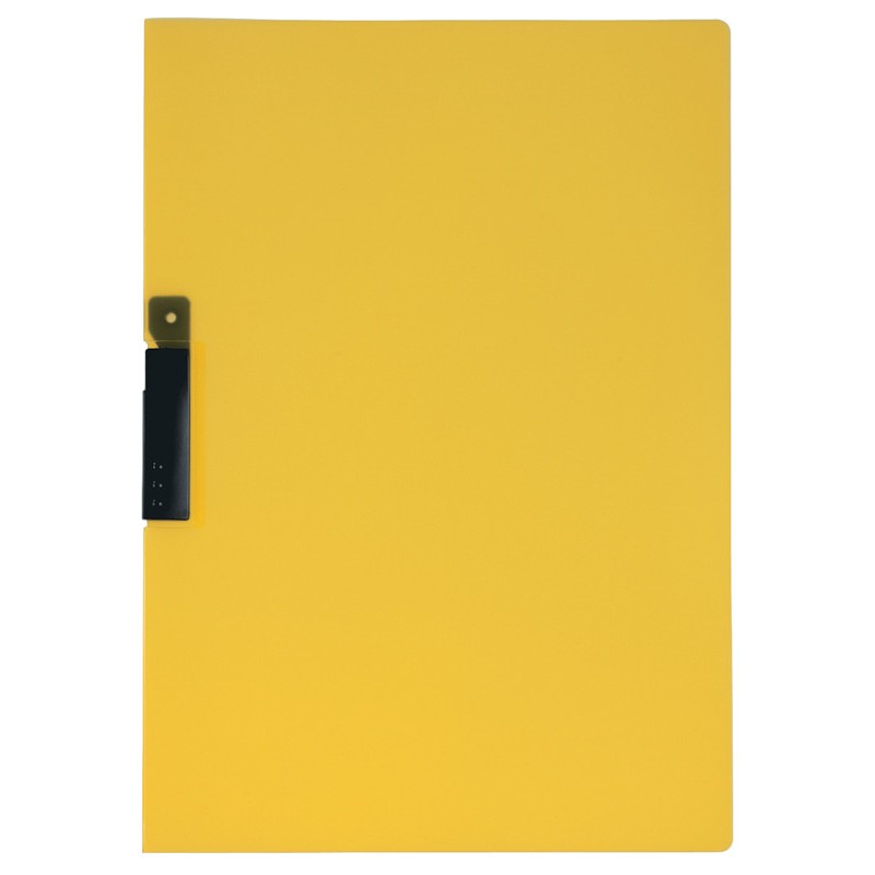 Dossier à pince KOLMA® easy en matériau KolmaFlex semi-transparent, pince noire, extrêmement solide à ouverture latérale et rainure de protection, capacité max. 25 feuilles 80 g/m2, pour format A4. Durabilité eco:plus: construit pour être démontable, recyclable, teneur en déchets recyclés après utilisation max. 100%.