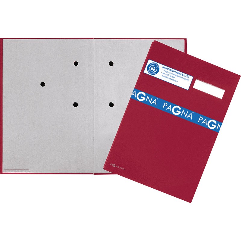 Livre pour signatures PAGNA® couverture en tissu, avec porte-étiquette et trous de contrôle, dos extensible, carton buvard gris, 20 compartiments, découpe répertoire dans le bas, pour format A4. Dimensions: L 240 x P 350 mm. Durabilité eco:plus: Certification: The Blue Angel.
