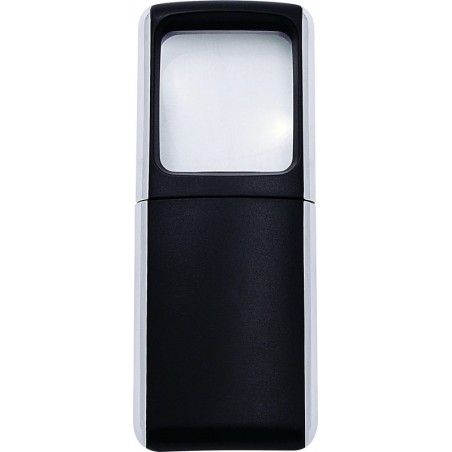 Loupe rectangulaire avec lampe à LED WEDO® en ABS, la lampe à LED blanche à forte luminosité s'allume en faisant glisser la partie supérieure du boîtier vers le haut, lentille en plastique L 35 x H 38 mm, grossit 3 fois, livrée avec 2 piles 3 V (CR1220), couleurs assorties. Dimensions: L 47 x H 118 x P 14 mm. Poids: 48 g. Prix incluant la TEA.
