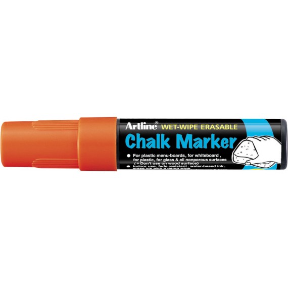 Marqueur craie ARTLINE® 12 pointe biseautée, pour dessiner et écrire sur les fenêtres, le verre, les tableaux et pratiquement toutes les surfaces non poreuses, craie liquide opaque à base d'eau, effaçable à l'aide d'un chiffon humide, sans xylène, non rechargeable, largeur de trait 12 mm.