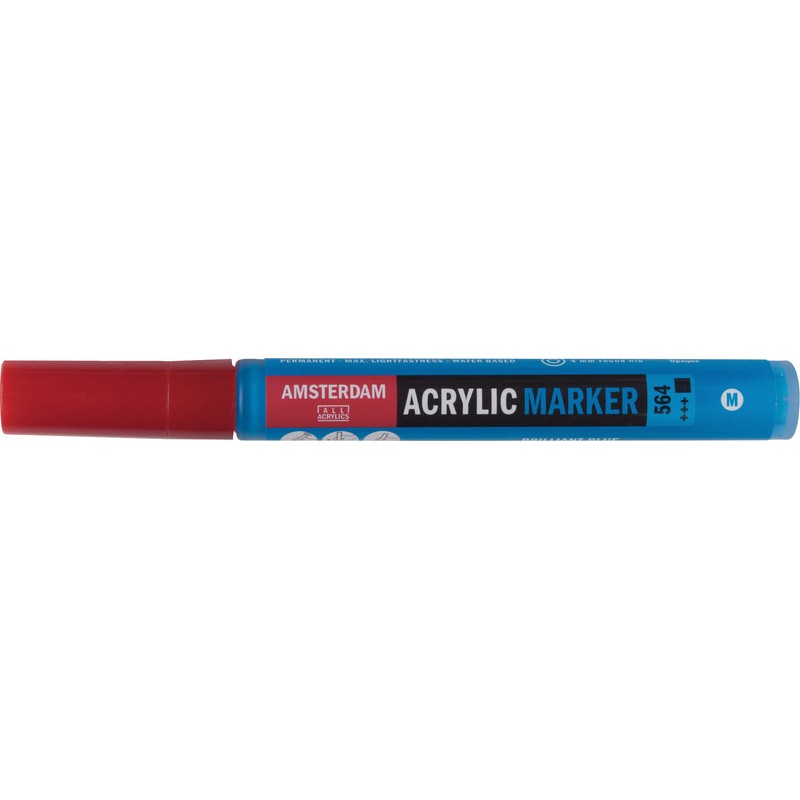 Marqueur acrylique AMSTERDAM pointe ogive, couleur brillante à base d'eau, très grande résistance à la lumière, parfait pour esquisser, peindre ou écrire sur un grand nombre de supports acryliques, p. ex. sur les châssis entoilés, le bois ou la terre cuite, séchage rapide, résistant à l'eau après séchage, non rechargeable, largeur de trait env. 4 mm.