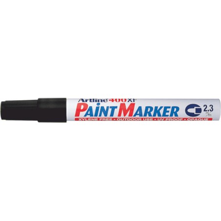 Paint Marker ARTLINE® 400XF pointe ogive, corps en aluminium, clip, encre permanente, parfaitement opaque, résiste à la lumière, à l'eau et à l'effaçage, écriture et signature sur supports transparents et foncés, séchage rapide, débit d'encre régulé par valve, sans xylène, non rechargeable, largeur de trait 2,3 mm.