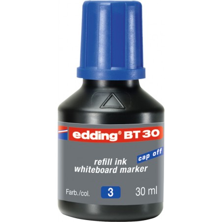 Encre pour marqueurs pour tableaux blancs EDDING® BT30 pour recharger les marqueurs pour tableaux blancs EDDING® 28, 29, 250, 361 et 365. Flacon de 30 ml. Durabilité eco:plus: recyclable.