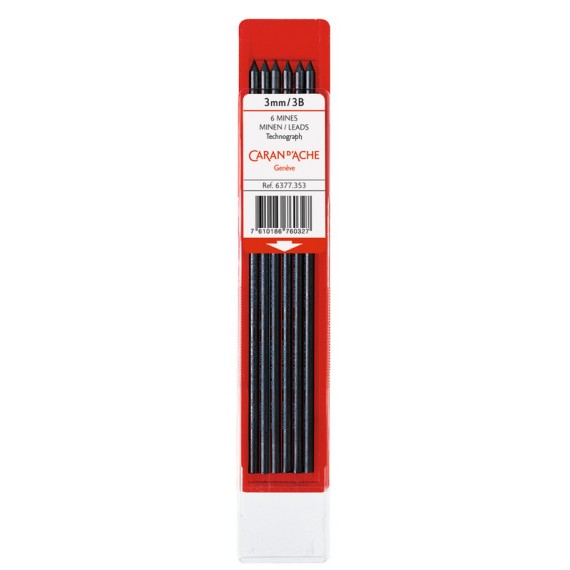 Mines graphite CARAN D'ACHE Technograph(TM) 2 mm longueur 120 mm, pour FIXPENCIL(TM) 2, 22, 882 et 884.299. étui de 3 pièces