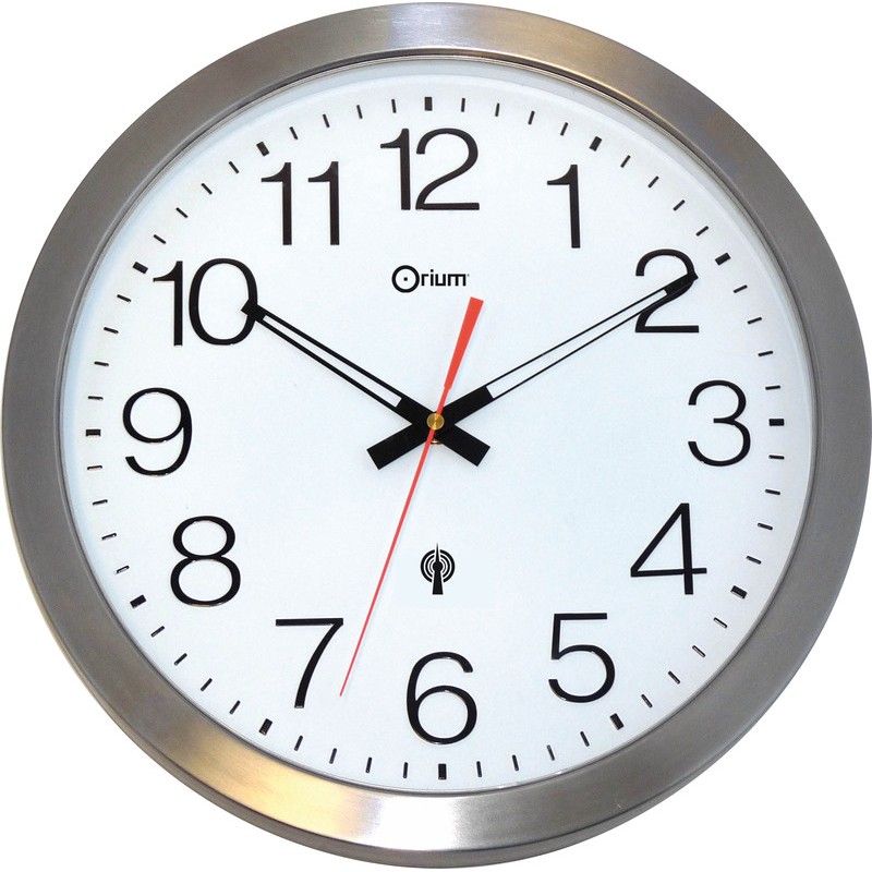Horloge murale étanche ORIUM® BY CEP boîtier en inox, verre de protection en verre minéral, trotteuse, horloge radiocommandée, avec mise à l'heure automatique aux changements d'horaire (été/hiver), étanche, peut être utilisée à l'intérieur comme à l'extérieur, alimentation par 1 pile AA (fournie). Dimensions: Ø 355 mm, P 45 mm. Garantie: 3 ans. Durabilité eco:plus: emballage respectueux de l'environnement. Certification: CE. Prix incluant la TAR.