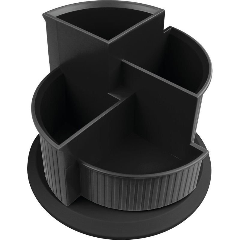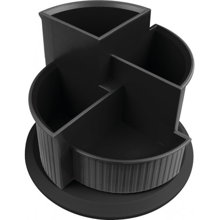 Multipot HELIT the hub line en PS, avec 4 compartiments, patins en caoutchouc antidérapants, pivotant. Dimensions: H 112 mm, Ø 140 mm. Durabilité eco:plus: durée de vie du produit prolongée, recyclable, teneur en déchets recyclés après utilisation max. 100%, réduction des déchets, emballage respectueux de l'environnement.