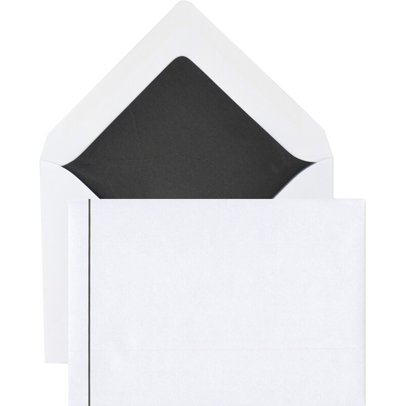 Enveloppes de condoléances ELCO Deuil blanches avec ligne noire, doublées noir, 100 g/m2, avec rabat en pointe gommé. Cello-zip de 25 pièces. Durabilité eco:plus: recyclable. Certification: FSC.