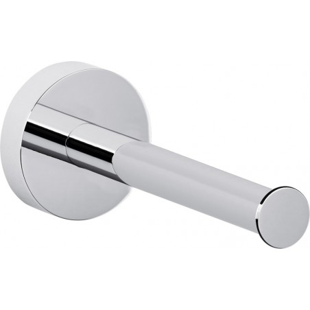 Porte-rouleau WC de réserve TESA® Smooz en métal chromé, inoxydable, avec technologie TESA® Power.Kit brevetée, amovible, applicable sur le carrelage, le métal, la pierre naturelle, le marbre, le bois, le verre et différents types de plastique. Dimensions: L 50 x H 50 x P 125 mm.