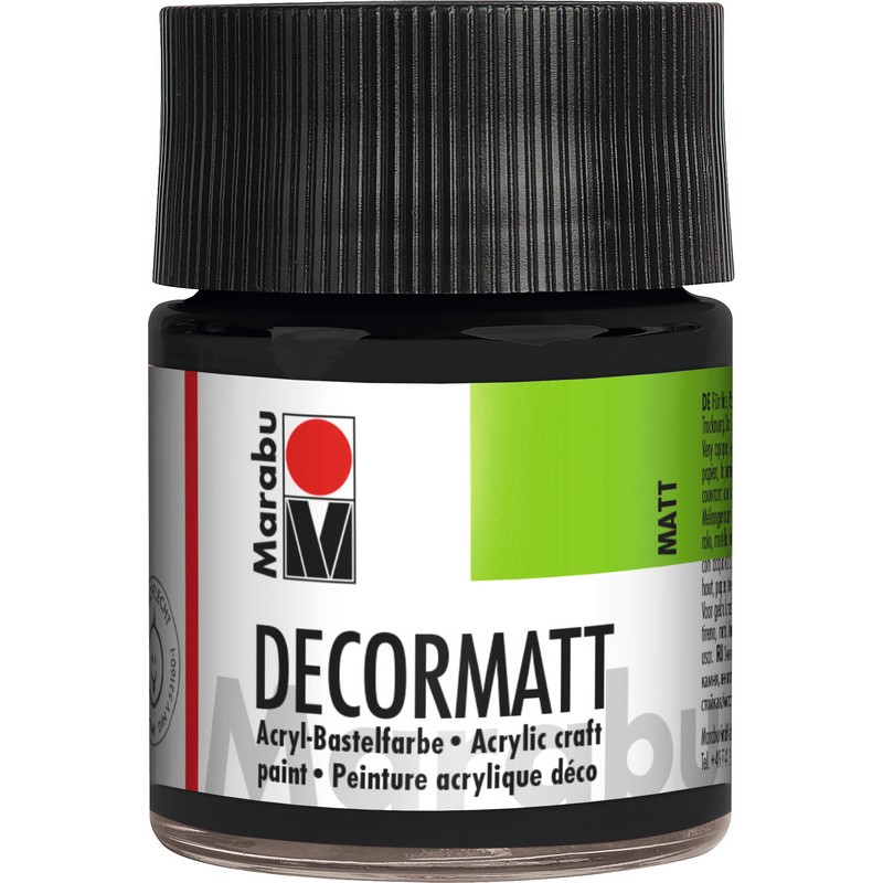 MARABU Decormatt Acryl peinture acrylique satinée mate à base d'eau, résistante aux intempéries, excellent pouvoir couvrant et très bonne stabilité à la lumière, applicable sur le bois, carton, papier, polystyrène expansé, verre, métal, pierre, etc. Durabilité eco:plus: recyclable, emballage respectueux de l'environnement. contenu 50 ml