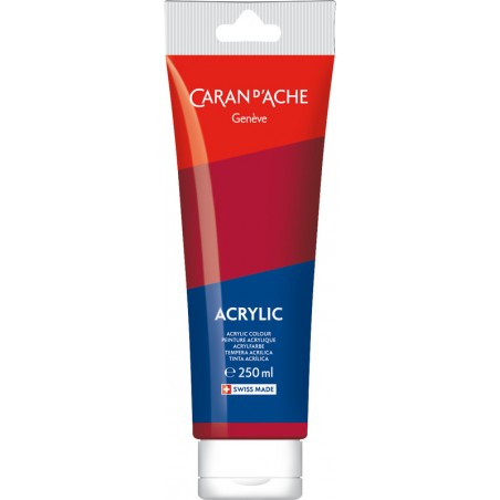 CARAN D'ACHE Acrylic couleurs acryliques lumineuses, ne craquellent pas, ne changent et ne se matifient pas après séchage, résistantes à la lumière, miscibles à l'eau, forte concentration pigmentaire, pour les surfaces lisses et texturées telles que la toile, tissus, papier, carton, verre, plastique, métal, bois, etc., s'appliquent au pinceau ou à la spatule. Tube de 250 ml.