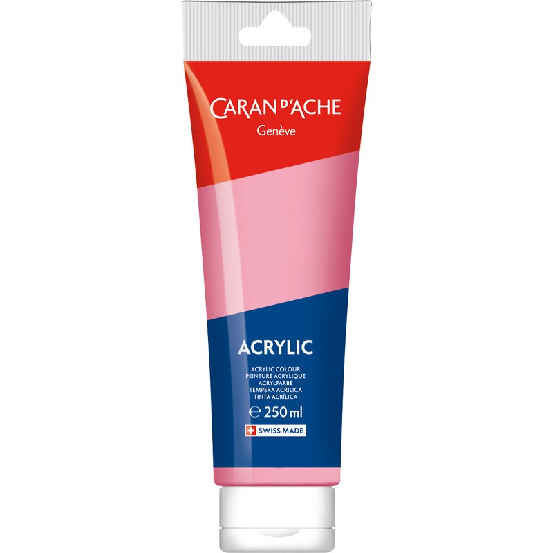 CARAN D'ACHE Acrylic couleurs acryliques lumineuses, ne craquellent pas, ne changent et ne se matifient pas après séchage, résistantes à la lumière, miscibles à l'eau, forte concentration pigmentaire, pour les surfaces lisses et texturées telles que la toile, tissus, papier, carton, verre, plastique, métal, bois, etc., s'appliquent au pinceau ou à la spatule. Tube de 250 ml.