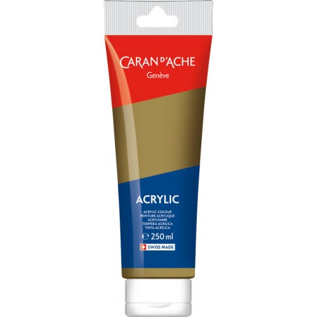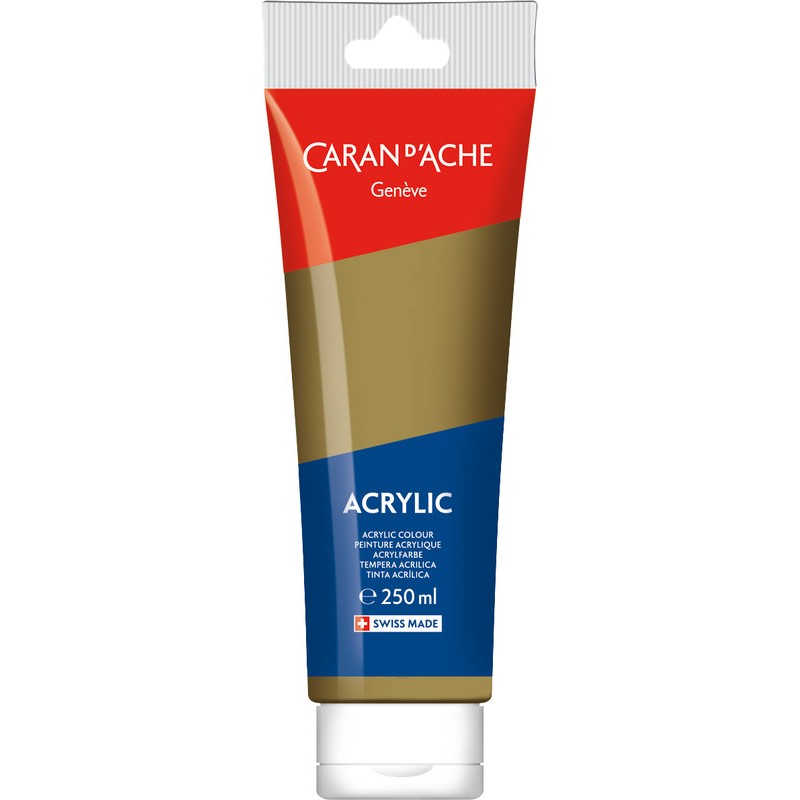 CARAN D'ACHE Acrylic couleurs acryliques lumineuses, ne craquellent pas, ne changent et ne se matifient pas après séchage, résistantes à la lumière, miscibles à l'eau, forte concentration pigmentaire, pour les surfaces lisses et texturées telles que la toile, tissus, papier, carton, verre, plastique, métal, bois, etc., s'appliquent au pinceau ou à la spatule. Tube de 250 ml.
