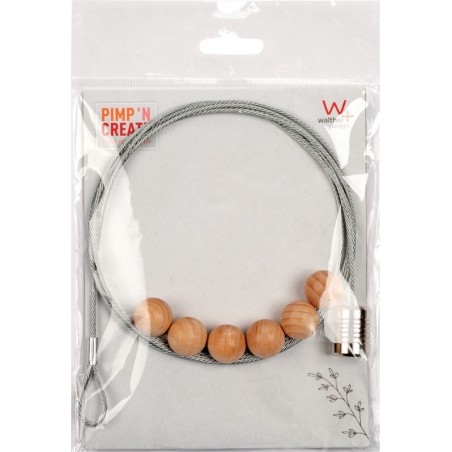 Photocorde WALTHER Pimp 'N Create en métal, poids à l'extrémité pour une suspension droite, avec 6 aimants en forme de boule en bois Ø 15 mm, supportent sans problème des images jusqu'au format 150 x 200 mm. Dimensions: L 1,5 m. Durabilité eco:plus: construit pour être démontable, recyclable, emballage respectueux de l'environnement.