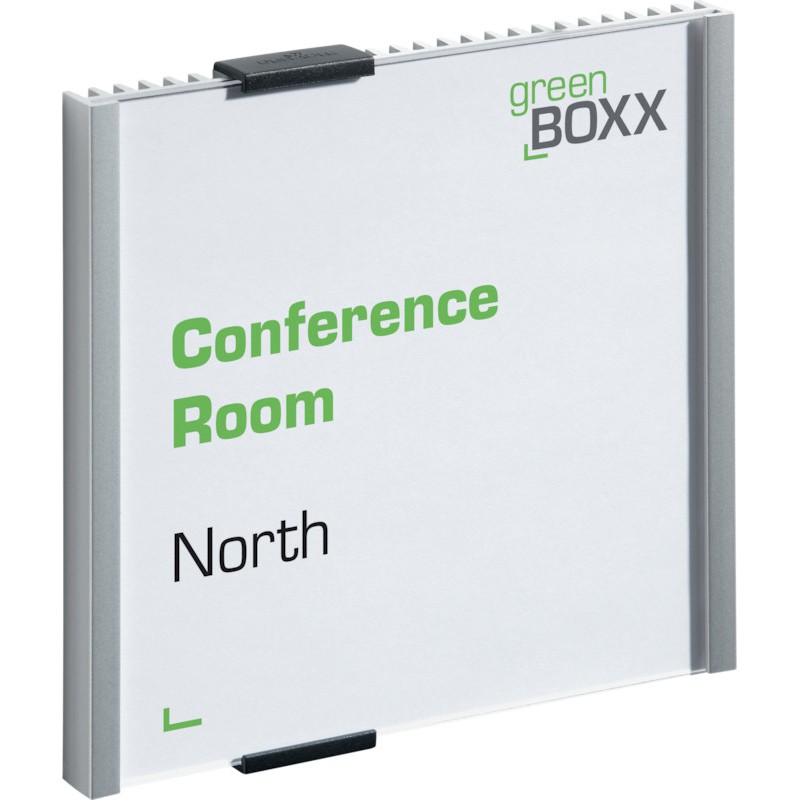 Plaque de porte DURABLE Info Sign en aluminium, les informations, textes, etc. sont glissés derrière une façade de protection amovible en acrylique transparent antireflet et peuvent être facilement actualisés, la façade est fixée avec 2 embouts, les plaques peuvent être vissées ou collées, livrée avec le matériel de fixation, inscription facile et personnalisable gratuitement à l'aide des modèles téléchargeables sur www.duraprint.fr.