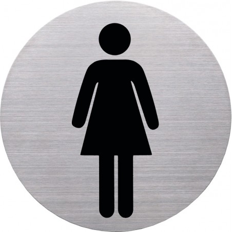 Pictogramme mural/porte HELIT the badge en acier inox brossé, impression en noir, autocollant, avec bande adhésive, Ø 115 mm. Blister de 1 pièce. Durabilité eco:plus: durée de vie du produit prolongée, recyclable, teneur en déchets recyclés après utilisation max. 100%, réduction des déchets.