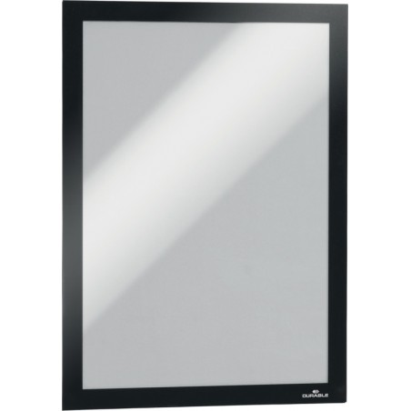 Cadres d'affichage DURABLE Duraframe® autocollants, actualisation simple et rapide des informations grâce au contour magnétique, adhèrent durablement sur toutes les surfaces courantes, se retirent et se repositionnent facilement sur toutes les surfaces lisses et rigides comme le verre, conviennent pour l'affichage d'informations, d'instructions, de tarifs, etc., lisibilité recto verso, s'utilisent au format portrait ou paysage. Emballage de 2 pièces.