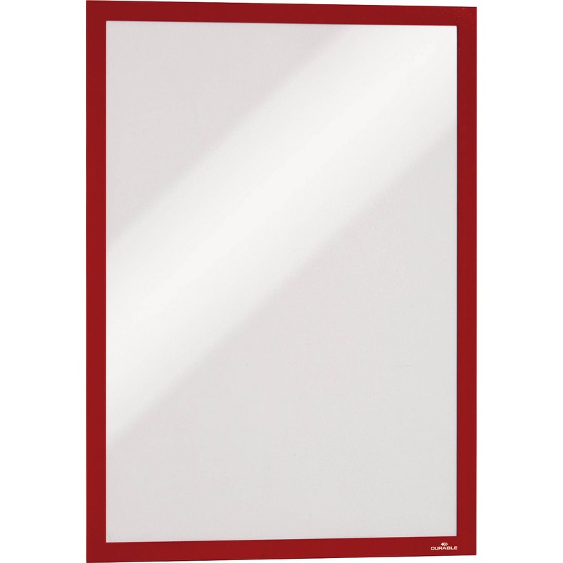 Cadres d'affichage DURABLE Duraframe® autocollants, actualisation simple et rapide des informations grâce au contour magnétique, adhèrent durablement sur toutes les surfaces courantes, se retirent et se repositionnent facilement sur toutes les surfaces lisses et rigides comme le verre, conviennent pour l'affichage d'informations, d'instructions, de tarifs, etc., lisibilité recto verso, s'utilisent au format portrait ou paysage. Emballage de 2 pièces.