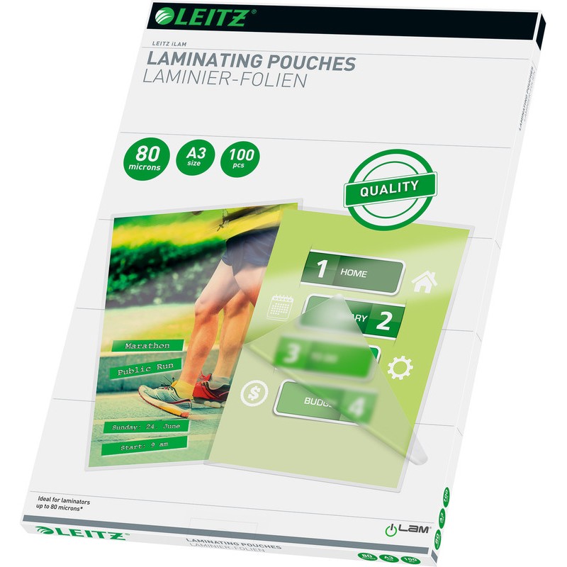 Pochettes de plastification LEITZ® iLAM ouvertes sur 3 côtés. format A3, 303 x 426 mm
