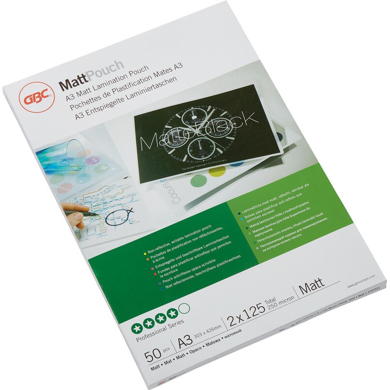 Pochettes de plastification GBC® de qualité premium ouvertes sur 3 côtés. format: A3, 303 x 426 mm