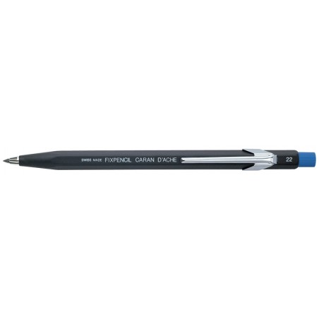 Portemine CARAN D'ACHE FIXPENCIL(TM) 22 hexagonal, longueur 135 mm, clip en métal, avec taille-mine, pour mines 2 mm 6077, bouton couleur assortie, rouge, bleu et noir.
