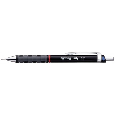 Portemine ROTRING Tikky noir corps en matière plastique avec repère de couleur, clip en métal, canon rigide, gomme. Durabilité eco:plus: construit pour être démontable, durée de vie du produit prolongée, emballage respectueux de l'environnement. pour mines 0,7 mm