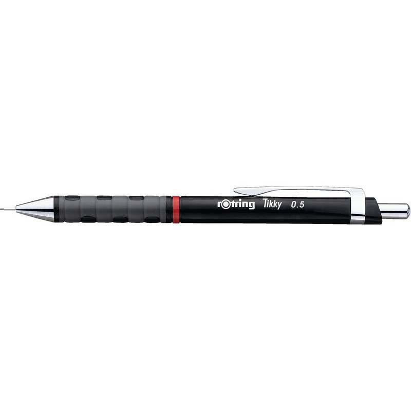Portemine ROTRING Tikky corps en ABS, clip en métal, canon rigide, gomme. Durabilité eco:plus: construit pour être démontable, durée de vie du produit prolongée, emballage respectueux de l'environnement. pour mines 0,5 mm