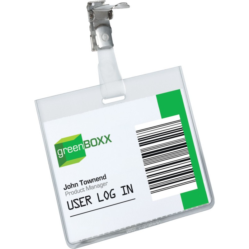 Porte-badges en plastique rigide DURABLE avec clip en plastique rigide transparent, avec étiquette interchangeable en bristol blanc, le clip tient le badge fermé, inscription facile avec le logiciel d'étiquetage gratuit Duraprint® sur www.duraprint.fr. Emballage de 25 pièces. Durabilité eco:plus: recyclable, composant recyclé, teneur en déchets recyclés après utilisation max. 8%.