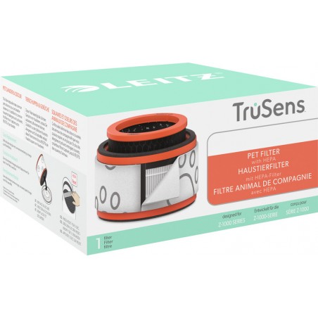 Filtre de rechange 3 en 1 à tambour animal domestique pour purificateur d'air LEITZ® TruSens(TM) pour lutter contre les poils d'animaux, les odeurs, les squames et la poussière, filtre combiné à 360° avec un préfiltre séparé en tissu lavable, pour retenir les grosses particules comme la poussière, diverses odeurs et divers gaz, avec un filtre HEPA pour attraper les petites particules à partir de 0,3 micron et un filtre à charbon actif à 2 couches, retient 99,97% des squames d'animaux en suspension dans l'air, à remplacer tous les 12 mois pour de meilleurs résultats, témoin lumineux pour le remplacement du tambour du filtre. pour purificateur d'air Z-1000