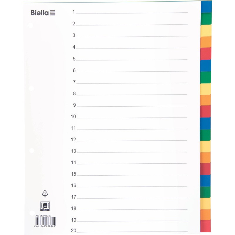 Répertoire format extra large BIELLA en PP couleur, pour poches transparentes, avec feuille d'index.