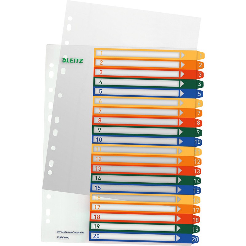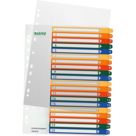 Répertoire extra large LEITZ® couleur en PP, transparent, perforation universelle, pour poches transparentes, un modèle au format Word peut être téléchargé gratuitement sur www.leitz.com/projectsystem, format A4.