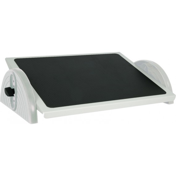 Repose-pieds ergonomique MAUL Confort pro en ABS incassable avec tapis en feutre, gris, pieds antidérapants, hauteur réglable sur 5 positions, hauteur à l'avant 48 à 119 mm / à l'arrière 66 à 220 mm, sans bordures latérales limitant le déplacement des pieds, plateau L 450 x P 390 mm. Garantie: 3 ans. Certification: GS.