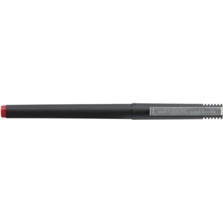 Roller UNI-BALL micro corps en matière plastique noir, pointe en acier inox, clip chromé, encre pigmentée et résistante à l'eau, extrémité du corps et capuchon dans la couleur de l'encre, non rechargeable, largeur de trait 0,3 mm.