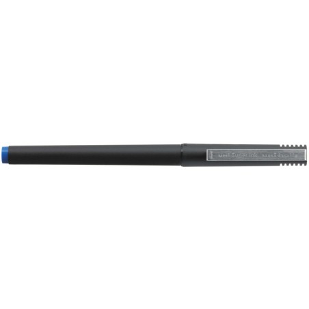 Roller UNI-BALL micro corps en matière plastique noir, pointe en acier inox, clip chromé, encre pigmentée et résistante à l'eau, extrémité du corps et capuchon dans la couleur de l'encre, non rechargeable, largeur de trait 0,3 mm.