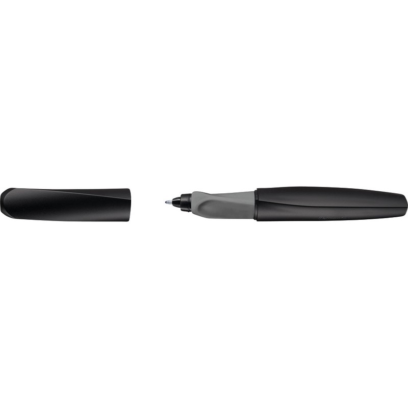 Roller à encre gel PELIKAN Twist grip ergonomique, pour droitiers et gauchers, design cool, encre bleue effaçable, rechargeable. Durabilité eco:plus: construit pour être démontable, durée de vie du produit prolongée, recyclable, réduction des déchets.