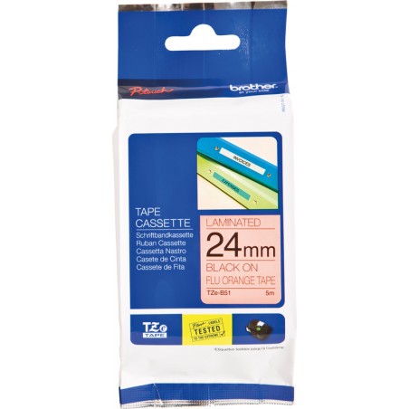 Ruban BROTHER P-touch TZe laminé résiste à l'essuyage, étanche et antirayures, résiste aux températures extrêmes et aux UV, pour la maison, le bureau et le lieu de travail. largeur 24 mm, longueur 5 m