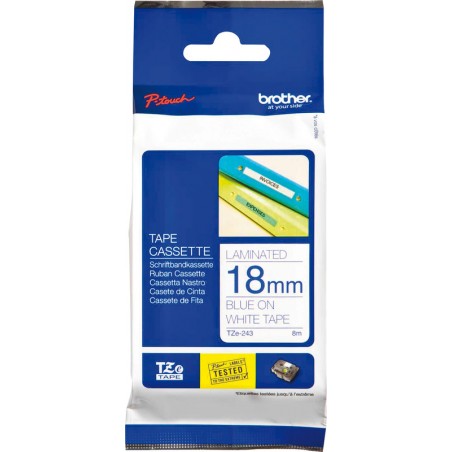 Ruban BROTHER P-touch TZe laminé résiste à l'essuyage, étanche et antirayures, résiste aux températures extrêmes et aux UV, pour la maison, le bureau et le lieu de travail. largeur 18 mm, longueur 8 m