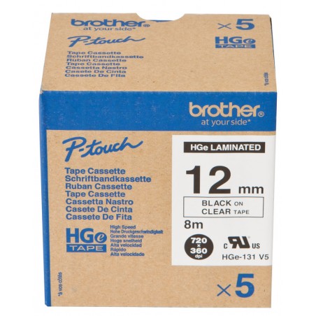 Ruban BROTHER P-touch HGe laminé grande vitesse, longueur 8 m. Emballage de 5 pièces. largeur 12 mm