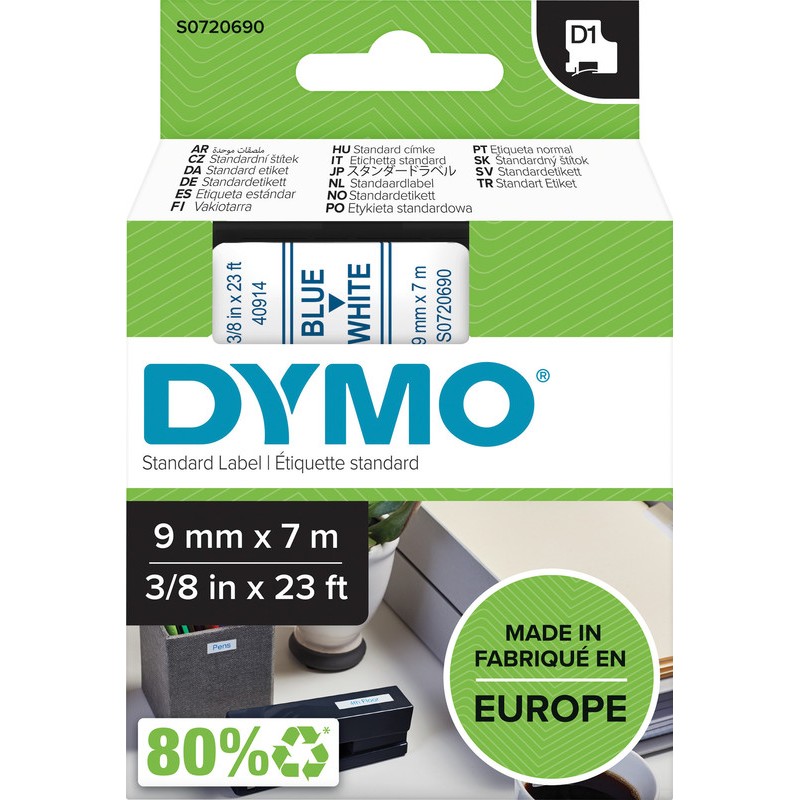 Dymo ruban D1 9mm blanc/bleu