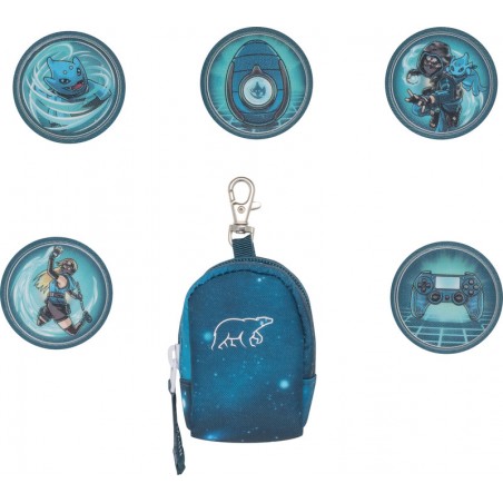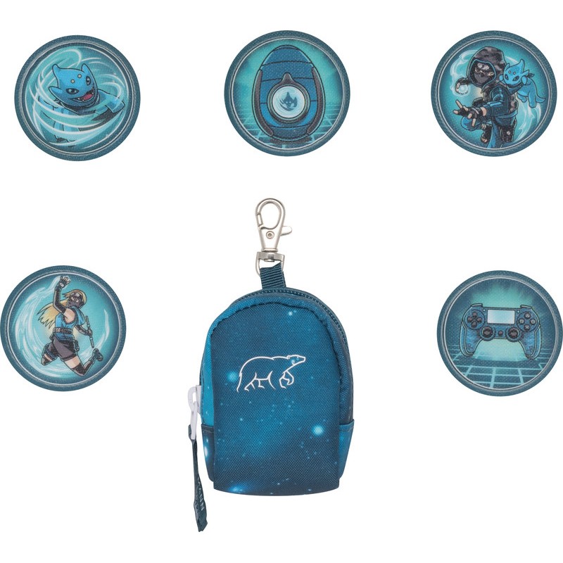 Button Bag pour sac à dos pour écolier BECKMANN fabriqué avec des bouteilles en PET recyclées (rPET), pour collectionner, échanger et changer, personnalisation du sac à dos au gré des envies, compatible avec le sac à dos pour écolier BECKMANN Classic, Active Air FLX et Plus Air, 4 ou 5 patches selon le modèle, autogrippants interchangeables dans une pratique Button Bag. Dimensions: L 70 x H 90 x P 50 mm. Poids: 40 g. Durabilité eco:plus: Certification: OEKO TEX®.