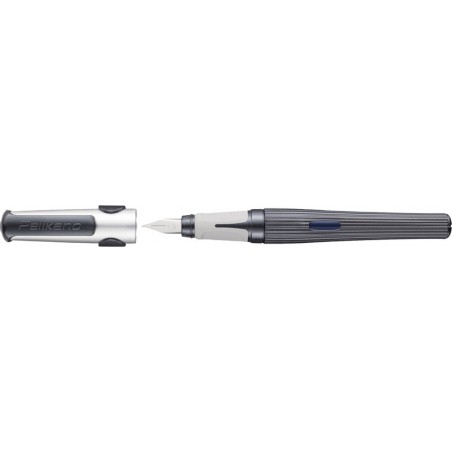 Stylo plume avec structure PELIKAN Pelikano® zone de préhension douce adaptée à la couleur du corps, corp en plastique de haute qualité, fenêtre transparente pour visualiser le niveau d'encre, plume en acier inoxydable finition iridium pour une écriture sans rayures, capuchon en métal. Durabilité eco:plus: durée de vie du produit prolongée, recyclable, réduction des déchets. pour droitiers