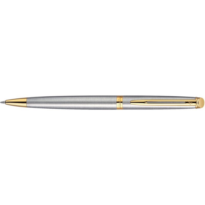 Roller WATERMAN Hémisphère doré attributs dorés, clip en métal, mécanisme rotatif, mine cartouche standard, couleur de l'encre bleue, rechargeable. Durabilité eco:plus: construit pour être démontable, durée de vie du produit prolongée.