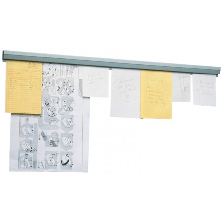 Rail de fixation pour papier BoOffice en PVC gris clair, pour suspendre des plans sans les endommager, fixation du papier par rouleaux, montage mural autocollant ou avec vis (fournis).
