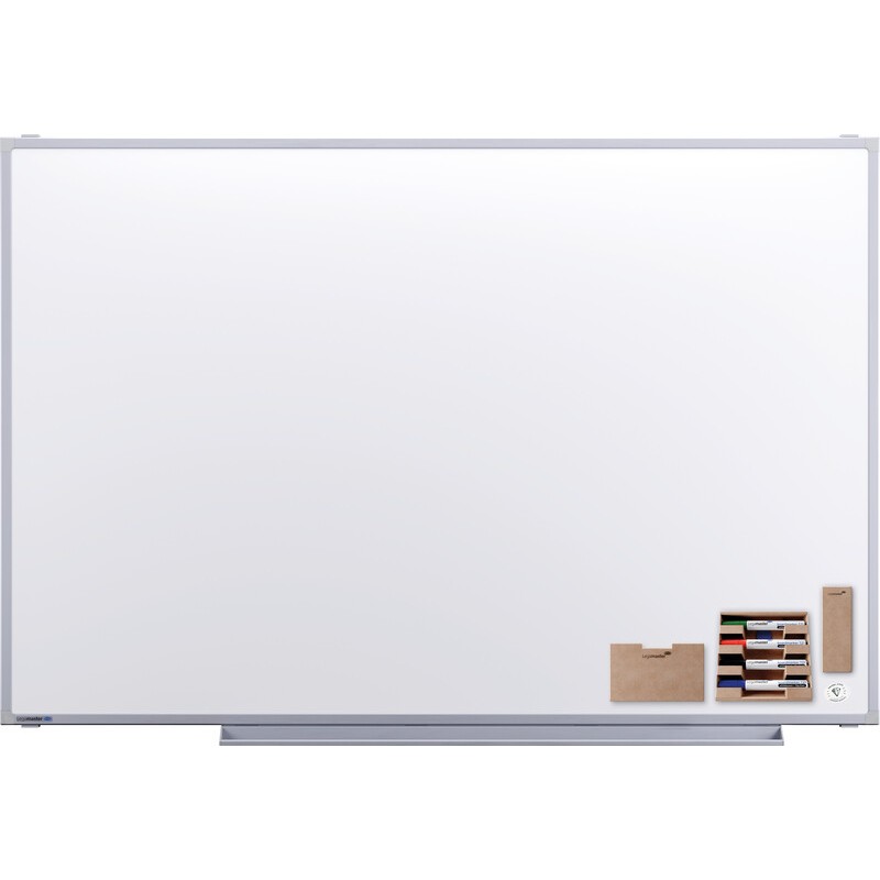 Tableau blanc LEGAMASTER® Professional tableau blanc en émaillé, effaçable à sec et magnétique, résistante aux rayures et aux attaques chimiques, montage possible en format portrait et paysage, livré avec marqueur pour tableaux blancs, auget et kit de fixation. Garantie: 25 ans sur la surface (écriture et effacement) si elle est utilisée avec les accessoires pour tableaux blancs LEGAMASTER®.